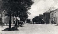 A street view of Churchill, looking south. Pictured from left to right are: St. Peter's Anglican Church, the Sloan, IHS2591