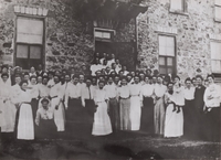 Photo of a group of ladies from throughout the community who attended the Chris Grose barn raising in 1906. The first, IHS1724