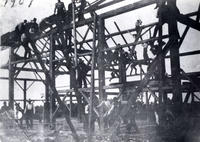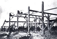 Image taken during the barn raising in 1907 on farm of John Leonard, Lot 22, Concession 10, Stroud. He was the father, IHS131a