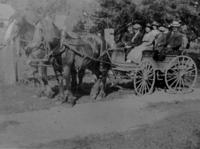 Photo of John S. Leonard and his family in Democrat, which was a type of horse-drawn carriage popular in the early, IHS1063