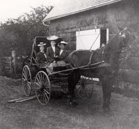 Photo of Mabel Guest (1883-1940), Pearl Soules (1887-1956), and Myrtle Guest (1880-1967) riding in a horse and buggy., IHS2228