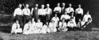 Front left to right: _______, May Allen, Milton Morton, Mildred Ayerst, Lucile Ayerst, Harvey King, Bessie Cunningham,, IHS2647