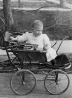 Photo of King Houston Jr. (1912 - 1976) as an infant, wearing a white gown in a pram. He was the son of King Houston Sr., IHS2458