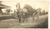 Photo of Edward Webb holding the reins of a horse tethered to a buggy. The photo is believed to have been taken during