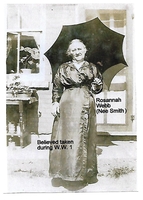 Photo of Rosannah Webb (née Smith) standing outdoors and holding a parasol, believed to have been taken during the First
