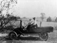 Photo of the Ford Model T truck that became the first motorized vehicle to haul grain to the Craigvale elevator in 1918., IHS1095