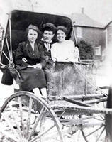 Photo of Lil and Eva Whan with Lynton Beatty in a horse-drawn carriage., IHS2755