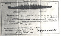Receipt - Western Assurance Company. Mrs. Archibald Torrance - the sum of Fourteen dollars being premium for renewal of, IHS1266