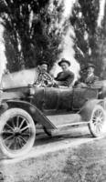 Fred Lucas (rear seat) riding in a car with others (unknown)., IHS1542
