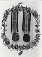 Photograph of the two war medals belonging to Edward Harold Irving of Stroud during the First World War. The medal on, IHS2378-9