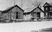 A blacksmith shop and adjoining it the start of a garage. These buildings were owned and operated by George Shering and, IHS2972