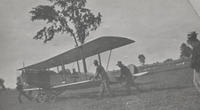 Photo of a biplane on a training flight from Camp Borden that made a forced landing on a farm field in the north half of,