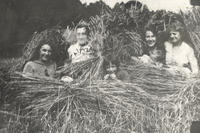 Playing in the sheaves (wheat) at Strathallan Woods, IHS1841