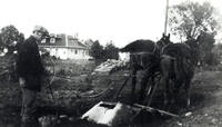 equipment--horse--team--agriculture--labour--tools--hat--house--animal