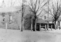 Photo of Big Bay Point school with church in background. The school was located in Lot 23, and the church, which was, IHS1029
