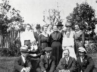 Top row: Lloyd Srigley, Vera Minnikin, Frankie Srigley, Eva Kell, Elsie Gibson, Milton Lougheed, Otto Srigley, IHS3458