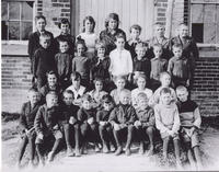 Group photo taken in 1920 of Cookstown Public School's students. They are posed beside the school building and are,