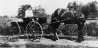 Percy Thompson driving a horse drawn buggy. He was the first husband of Mrs. Bertha Stewart, whose father Tom Atkinson, IHS984