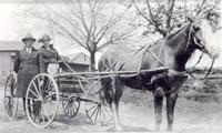 Mr. and Mrs. Charles Parker of Bethesda with horse and buggy, taken at their farm with barns visible in the background., IHS1392