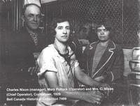 Photo of Manager Charles Nixon, Operator Mary Pollock, and Chief Operator Ethel Nixon (née Baker) taken inside the Bell, IHS4010