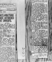 Newspaper clipping from the Barrie Examiner on the Innisfil elections of 1944 entitled "Acclamations are Accorded at, IHS2127