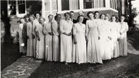 Group photograph of the Innisfil chapter of the Order of the Eastern Star in 1947. Pictured from left to right: Mrs., IHS2401