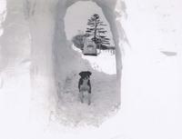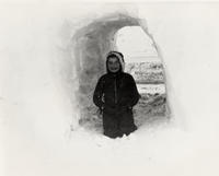 Picture of 8th Con (now Innisfil Beach Rd) and Highway #11 (now #4). Edith Thompson standing in snow tunnel through a, IHS1154