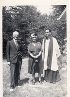 Photo of the minister presiding over the baptism of Bill Warnica, Reverend Jack William Newton-Smith (right) of St. Paul