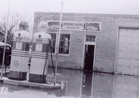 Photo of the exterior of the Stroud Orange Hall (1873-1958) on Victoria Street in Stroud showing the spring flood of, Orange Order, Stroud IHS# 3382-49