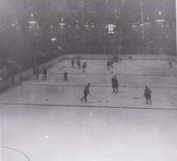 Candid photo of the Stroud Hockey Team on Barrie's ice at an unnamed arena. The photo shows most of the rink from higher, IHS3382-86C