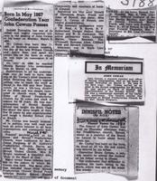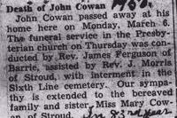 Social events - Obituary and Newspaper reports of the death of John Cowan