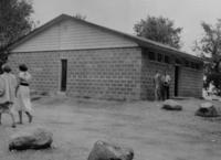 Black-and-white photograph of the Bethesda school building, a small brick schoolhouse with a hipped roof. A bell tower, IHS1922
