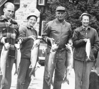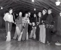 Back row: Harry J. Madle, Colin Sutherland, Joe Beleskey, Vernon Ayers, Wesely Willoughby, ____, Nancy Connel, Jennet, IHS827