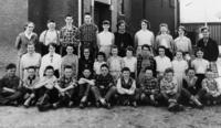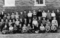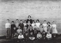 Alcona Beach Public School Junior Room class photo, 1955-56, with teacher Gladys Fralick. Pictured from left to right:, IHS4100