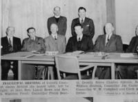 Inaugural meeting of Innisfil Township Area School Board No.2. Left to right: Lloyd Boothe, William Campbell, Bert, IHS3382-73