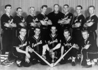 Team photo of the Fennells Softball Club, the South Simcoe Champions in 1963. The men are all wearing their uniforms,,