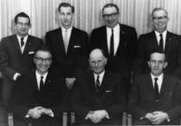 Posed group photo taken of the last School Board for Innisfil Township in 1965. Pictured from left to right - Back Row:, IHS406