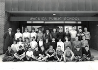 Senior class photo taken outside of the main entrance to Warnica Public School for the 1965-66 school year. Pictured