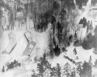Aerial photograph of Westman's Marina and the home of the Westman family taken during the winter in the mid-1960s. This