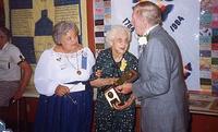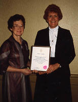 Ev. Coleman receiving certificate from Monica Crawford when she retired 1984.,