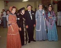 Ev. Coleman, Lilian Rainey, Jim Rainey, Harriette Rooney and Betty Elines dressed in costume for the Reunion and,
