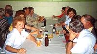 Photo taken during the Cookstown Reunion in 1984 of guests enjoying meals, which were served at long table. Dinner was,