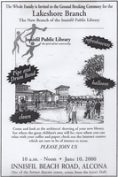 An advertisment inviting people to join the celebration of the ground breaking ceremony for the Lakeshore Branch - the