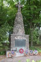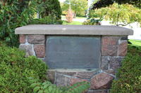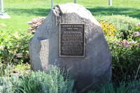 Stone cairn and commemorative plaque located near the entrance to St. James Cemetery in the community of Stroud. The