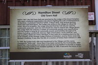 Historic plaque located in front of the building known as the Old Town Hall on Hamilton Street in the community of