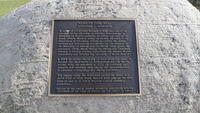 Bronze plaque mounted on a large stone, located in a park at the end of Kidd's Lane in the community of Cookstown. The