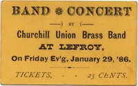 A band concert ticket for Churchill Union Brass Band at Lefroy. The ticket cost 25 cents.