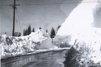 Stroud Orange Hall (1873-1958) on Victoria St., Stroud showing spring flood 1950 - from pg. 49 of Stroud Tweedsmuir, IHS3382-49