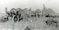 Threshing team on what was likely a hot summer day. Women usually stayed in preparing huge meals for the men., IHS362