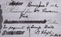 Copy of a receipt given to William Cowan for payment of $14 for a turnip drill from N. Hughes. The receipt is dated to 9, IHS3098